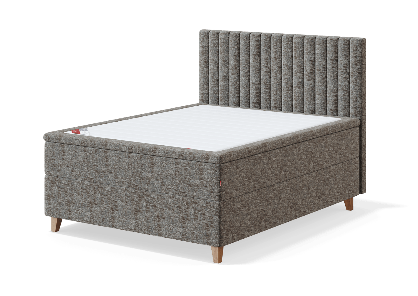 Elegantiškas 4 kojelių kontinentinio tipo lovos sprendimas su paslėptomis atraminėmis kojelėmis.