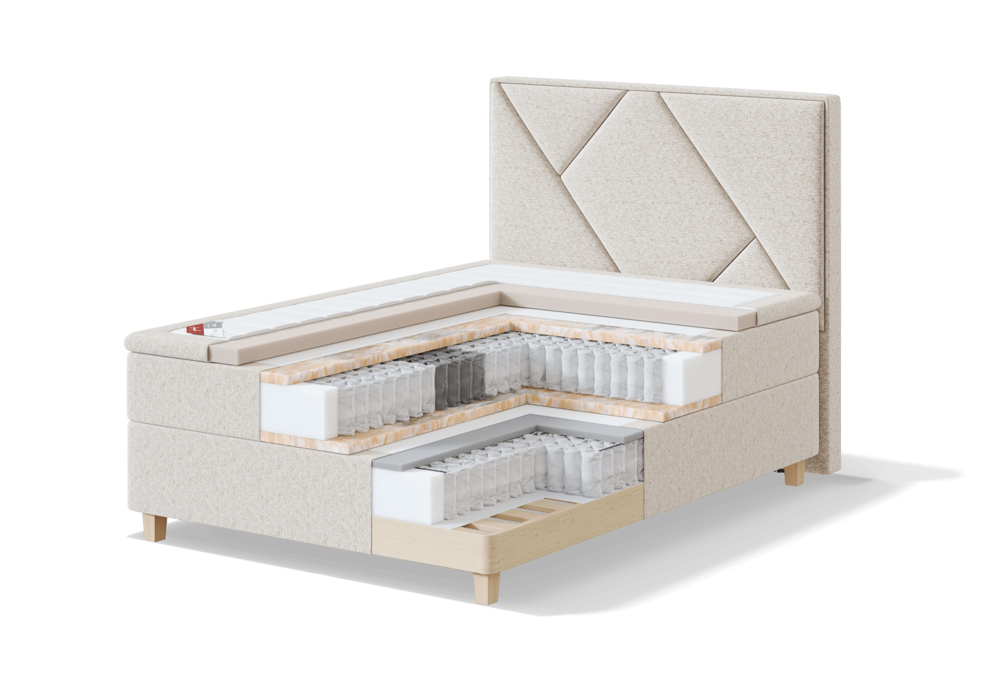 5 zonų spyruoklinis čiužinys su „Tiger Touch“ putų poliuretanu, kuris yra naujausias sprendimas medžiagų pramonėje – jis pralaidus orui ir suformuoja maloniai elastingą, kūną palaikantį pagrindą.